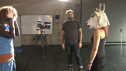 De vuelta a casa tocaba digerir la experiencia, dejarla reposar e invocarla de otra manera para encontrar aquello que está en nosotras pero que no sabemos conscientemente. Para ello recurrimos al espacio del plató de audiovisuales de Bellas Artes de la UPV y urdimos un plan: un par de sesiones performativas grabadas en vídeo, en este lugar tomado a modo de laboratorio experimental.
