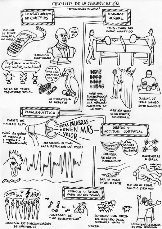 TECNOBLANDAS es una investigación sobre los conocimientos, técnicas y herramientas que afectan a las relaciones sociales. Se centra en el concepto de «tecnologías blandas» para poner la atención en los dispositivos sociales que estructuran sistemas complejos tanto en el nivel macro de lo social como en el micro de lo personal. Maquinarias más invisibles que las «tecnologías duras» que típicamente entendemos como «tecnología», pero no por eso con menos determinantes y poderosas.